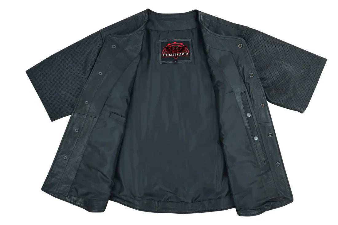 Men's Leather Baseball Motorcycle Shirt - Black -